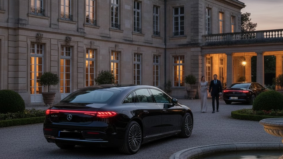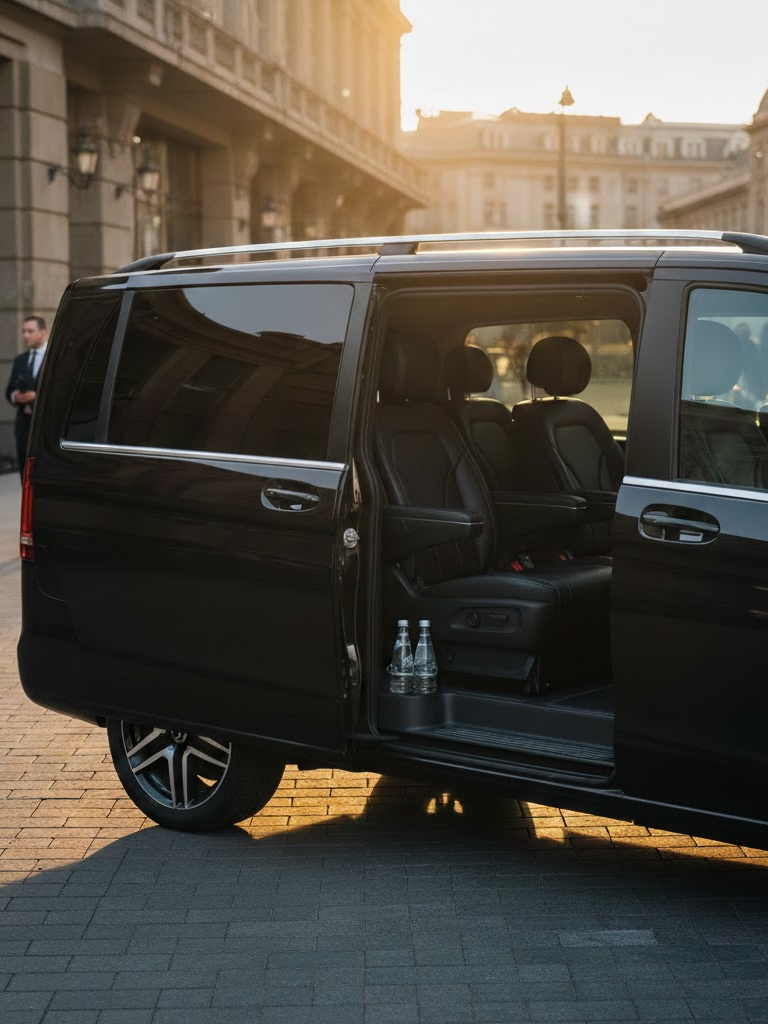 Transport premium : véhicule haut de gamme, Wi-Fi, prises de recharge et discrétion absolue.
